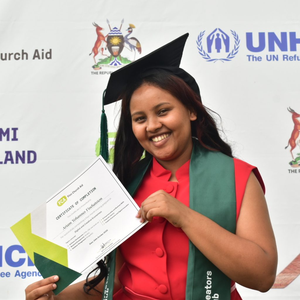 Among the graduates is 23-year-old Ariam Yohannes, a refugee from Eritrea who fled to Uganda in 2022 with little more than hope and determination.